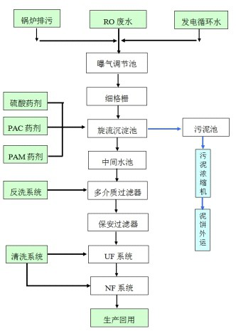 工艺, 回用水达到低压锅炉用水要求。工艺流程
